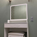 Туалетный столик ТСН-1 - неотъемлемая часть спальни или женской комнаты. Каждая девочка, девушка или дама хочет иметь собственное пространство, свой уголок красоты, для того чтобы привести себя в порядок, нанести макияж, удобно и компактно расставить свою косметику и парфюмерию, аккуратно сложить украшения и аксессуары. Столик имеет один выдвижной ящик на телескопических направляющих без доводчиков и зеркало с полкой. В оформлении фасадов МДФ применяется уникальная технология нанесения объемного узора (3D). Фурнитура: телескопические направляющие полного выдвижения без доводчиков. Важная информация. Мебель доставляется в разобранном виде, в упаковках.