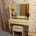 Туалетный столик ТСН-2 - неотъемлемая часть спальни или женской комнаты. Каждая девочка, девушка или дама хочет иметь собственное пространство, свой уголок красоты, для того чтобы привести себя в порядок, нанести макияж, удобно и компактно расставить свою косметику и парфюмерию, аккуратно сложить украшения и аксессуары. Столик имеет два выдвижных ящика на телескопических направляющих без доводчиков и зеркало с тремя полками. Размеры зеркала (ш/в) в мм: 630x550 мм. В оформлении фасадов МДФ применяется уникальная технология нанесения объемного узора (3D). Фурнитура: телескопические направляющие полного выдвижения без доводчиков.