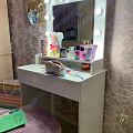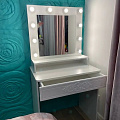 Туалетный столик ТСН-4 – неотъемлемая часть спальни или женской комнаты. Столик не занимая много места, остается вместительным и функциональным, позволяет компактно расставить косметику и парфюмерию, аккуратно сложить украшения и аксессуары. В ящике стола установлены телескопические направляющие полного выдвижения, обеспечивающие его плавный ход. Зеркало оснащено лампами с трех сторон, свет распределяется равномерно, что идеально для ухода за лицом и нанесения макияжа. Зеркало работает от сети, вся электрическая часть с проводкой смонтирована и закрыта задней стенкой. Рекомендуется выбирать светодиодные лампочки с цоколем Е14, мощностью 3-5 Вт и цветовой температурой 4000-4200K (нейтральный белый свет) или 6200K (дневной свет). Фурнитура: телескопические направляющие полного выдвижения без доводчиков. В зеркале присутствует провод (2м) с вилкой, на проводе есть тумблер вкл/выкл.